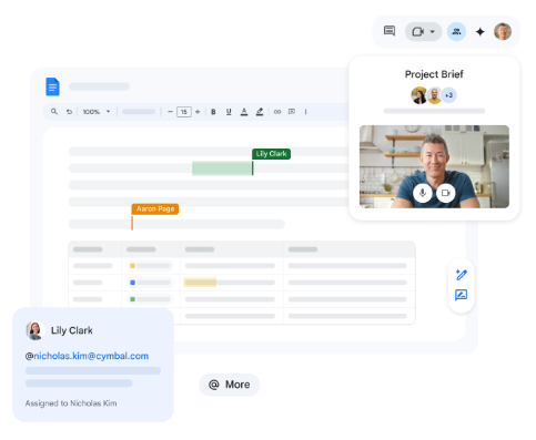 Collaborate in context by meeting in Google Docs, Sheets or Slides.