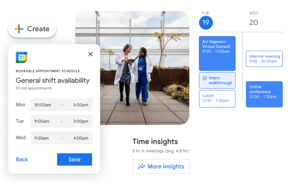 Familiar, easy-to-use tools for work like Gmail, Docs, Calendar and Meet