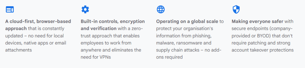 Google Workspace is built with the security, reliability and cloud infrastructure necessary to keep information, identities, applications and devices safe.