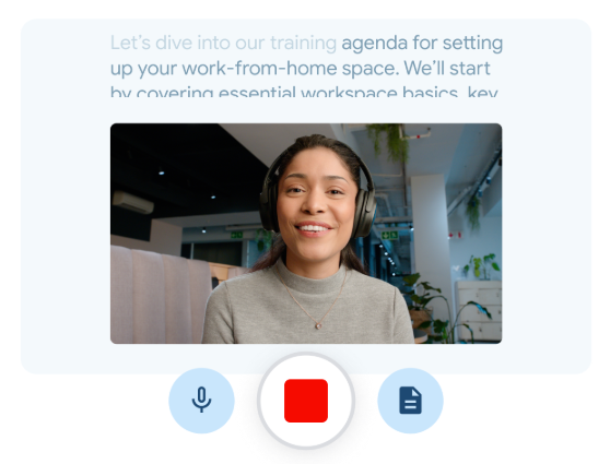 Personalise your content with Vids recording studio to deliver employee training and share company-wide announcements, meeting updates and more.